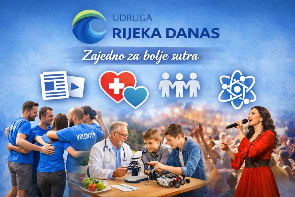 The purpose of the Association is to monitor and publish social, cultural, sports and other events of public interest through the Rijeka Danas portal; to promote and develop volunteering; and to strengthen cooperation with educational, cultural, scientific and health organisations, institutions and associations with similar goals from Rijeka, Primorje-Gorski Kotar County and Croatia.